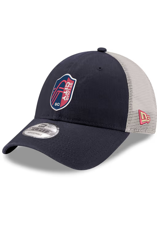 New Era St Louis City SC Primary Crest Stone Mesh Trucker 9FORTY Adjustable Hat – Navy Blue